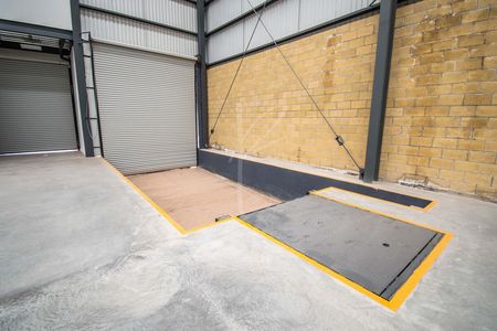 - Anden de carga pesada con rampa niveladora y capacidad para recibir trailers de hasta 53 pies cúbicos cada uno
